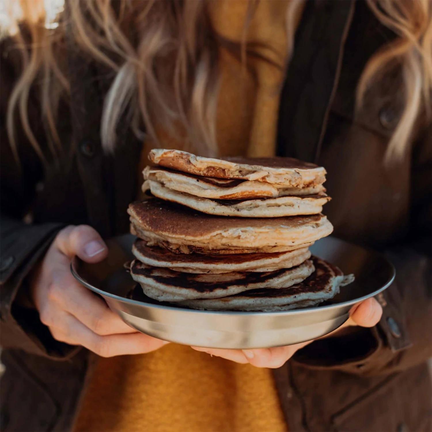 From pancakes, to grilled cheese, to hearty pasta and a side of garlic bread, these shallow-bowl plates can hold it all. With a sleek design these plates look just at home around the campfire as they do on the backyard picnic table. Made of food-grade 18/8 stainless steel, these plates are extra durable and won’t pick up or give off any flavors. The plates are easy to clean and stackable for a smaller packing volume.