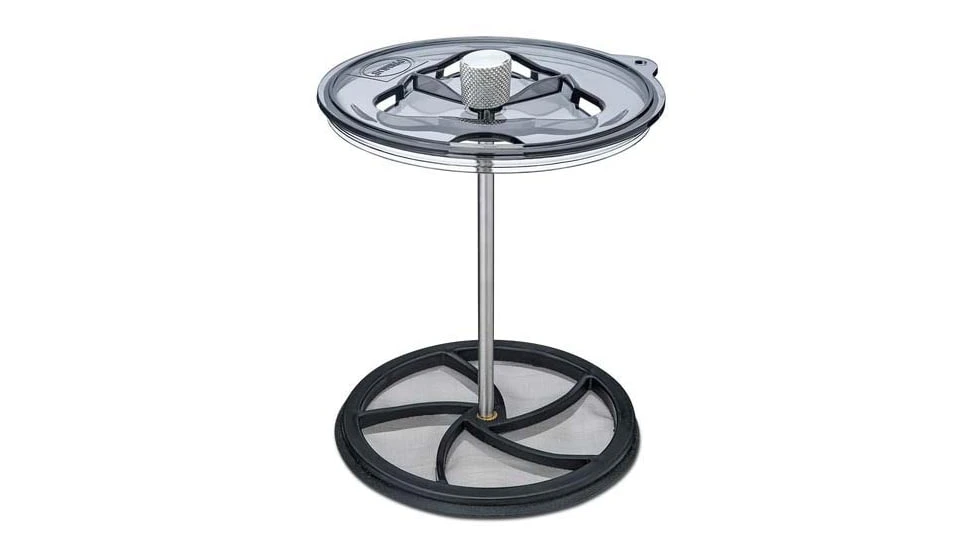 The BPA Free plastic lid screws into one end of the post while a mesh screen connects to the other side. Store assembled in the pot or dismantle for ease of packing with all the other stove accessories.