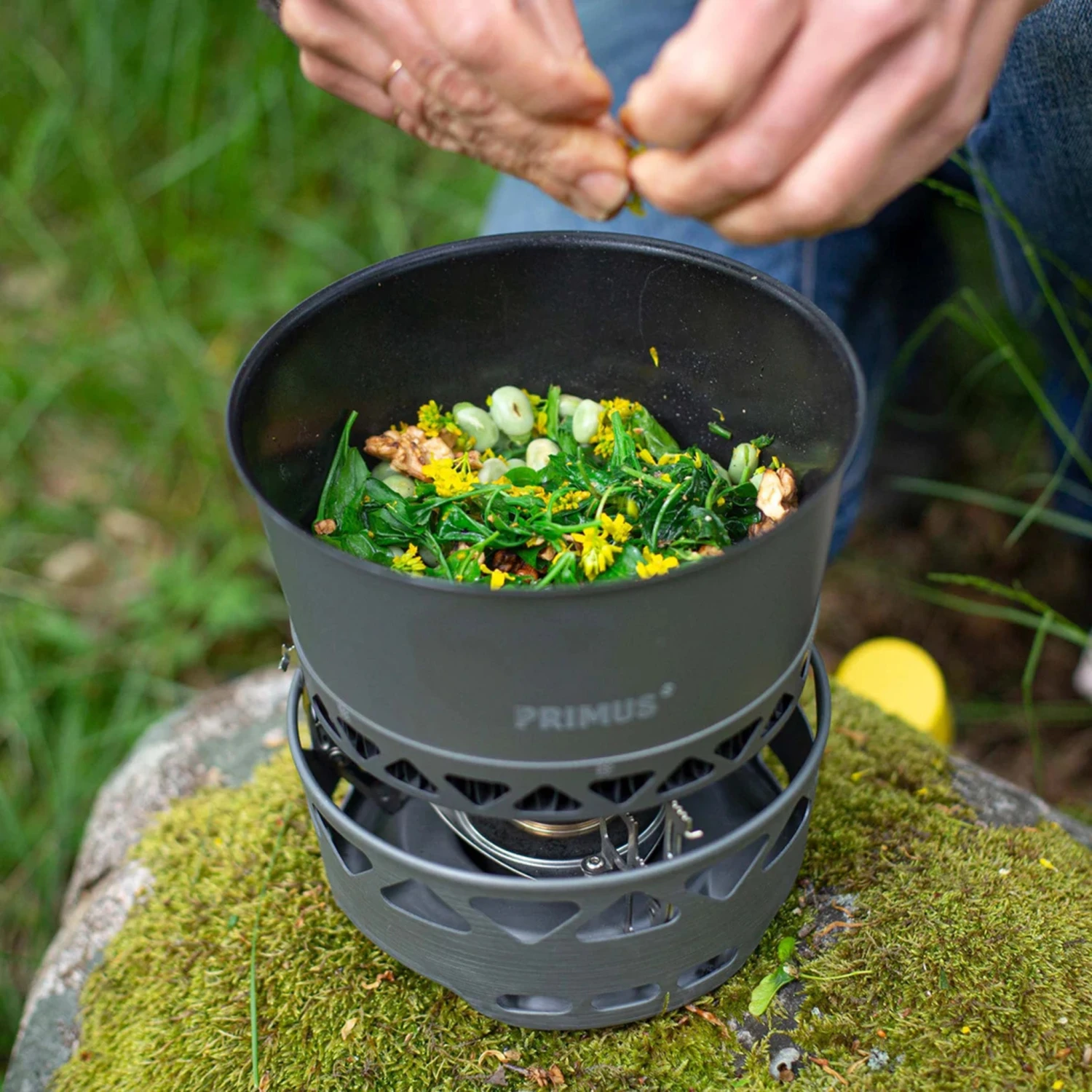 Easily feed the backcountry group gourmet meals with this fuel-efficient stove system that brings along everything the chef needs to cook in one package.