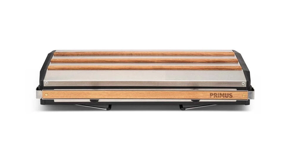 The sleek stainless steel body, die-cast aluminum sides, oak laths and brass details upgrade the look of any campsite, and will hold up to many years of use. The internal pot supports and drip tray are removable for easy cleaning. When storing, simply lock closed – this slim-profile stove can be stashed almost anywhere.