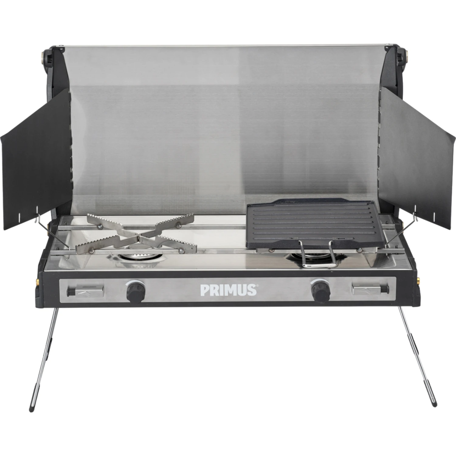 <p>The Tupike Stove from Primus turns the campsite into a gourmet kitchen. It combines an elegant design including oak wood applications with high performance and is as light as possible thanks to a lot of aluminium.</p><p>The two flames can be easily ignited via piezo ignition and their temperature can be precisely regulated. Stainless steel pot supports ensure even greater efficiency. Firmly anchored windshields allow the pasta water to boil quickly even in uncomfortable weather, and the steel legs with a locking mechanism always guarantee a firm stand.</p><p>The outdoor stove has an extra grill plate with a non-stick coating for versatile use in outdoor cooking. Both the potholders and the drip tray are easy to remove and can thus be cleaned without much effort.</p>